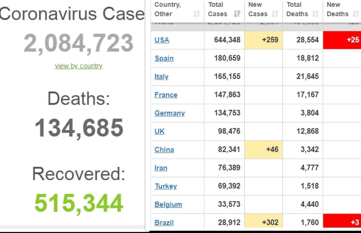 कोरोना अपडेट : विश्वभर एक लाख २ हजार ६९३ को मृत्यु, महामारीको भुङग्रोमा अमेरिका