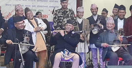 बालुवाटारमा सारंगी साँझ : ओलीले बजाए बाँसुरी