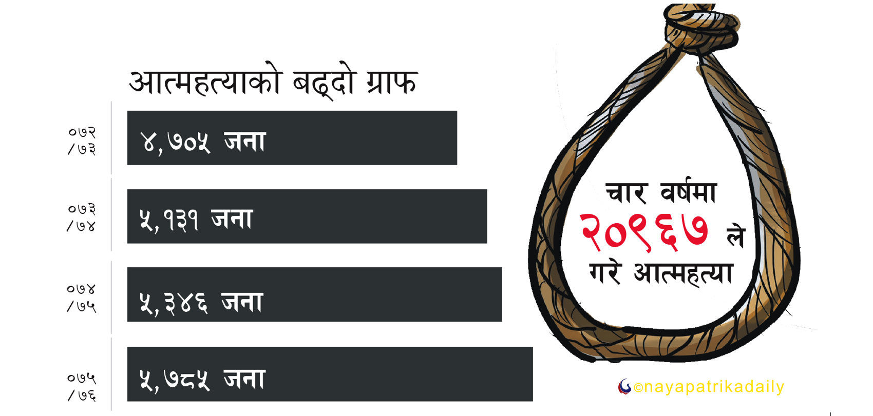 एक दिनमै १५ आत्महत्या : तीन सातामा चार कर्मचारीले गरे आत्महत्या