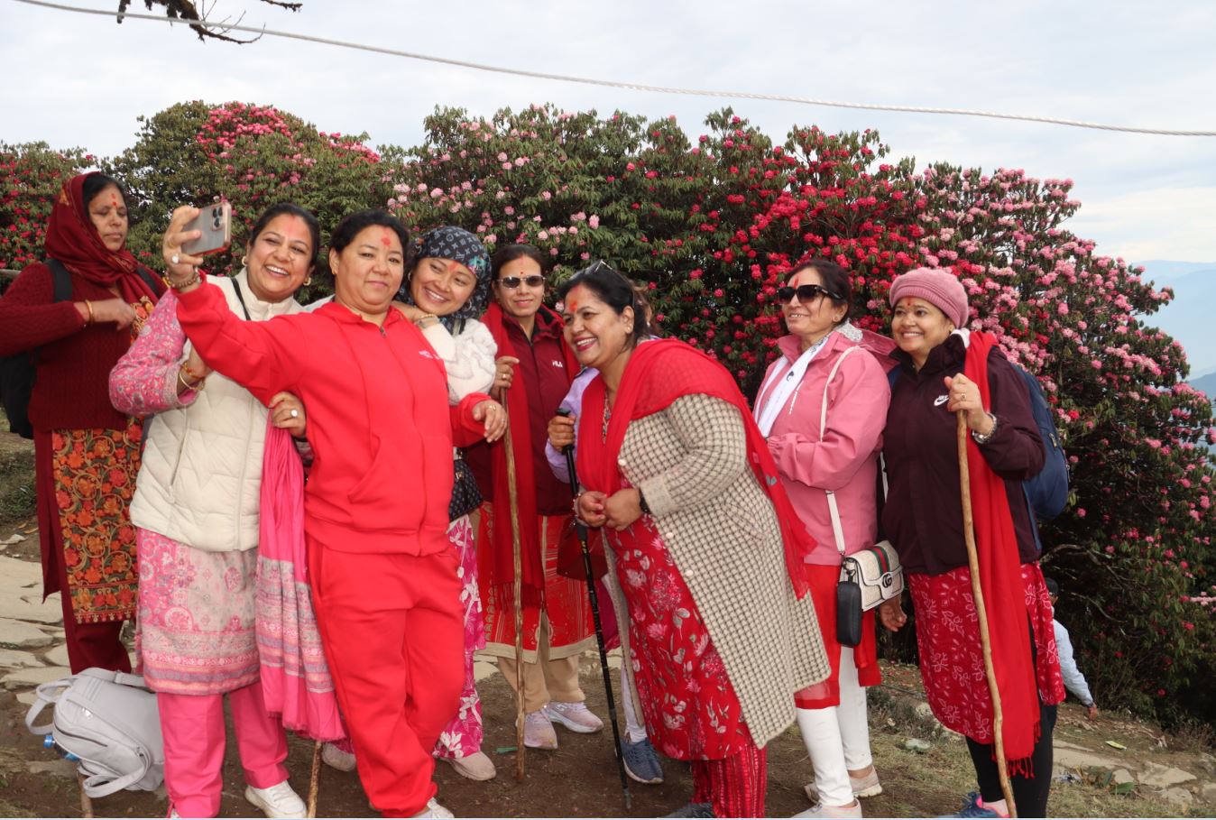 पाथीभरा क्षेत्रमा ढकमक्क फुल्यो लालीगुराँस, तीर्थयात्रीहरु रमाउदै सेल्फी हान्दै (फोटो फिचर)