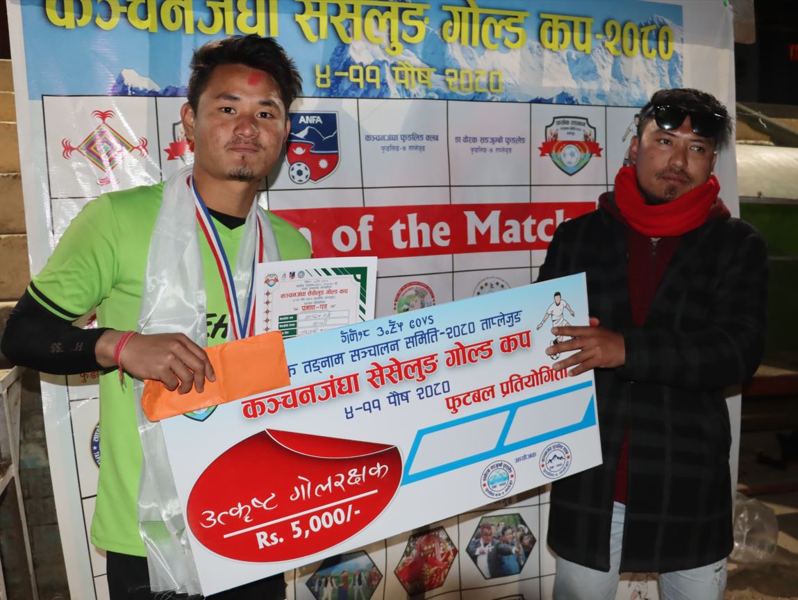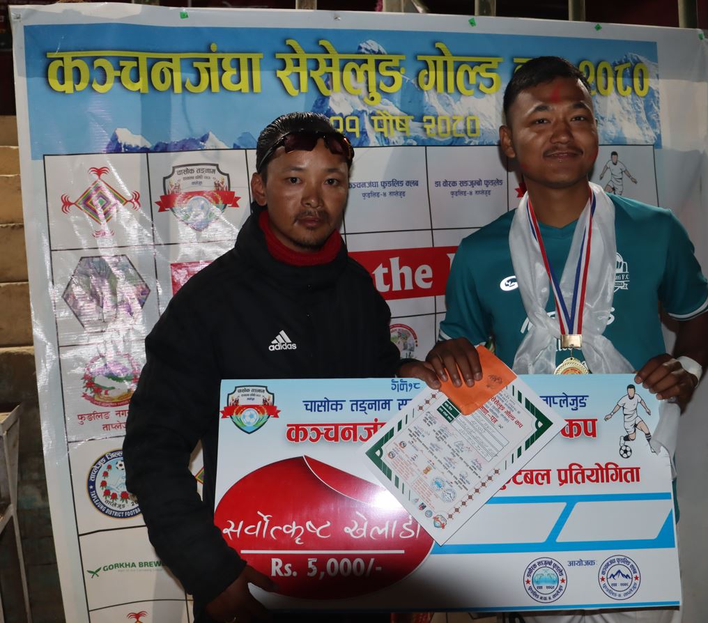 सगरमाथा युथका सुशील राई म्यान अफ दि म्याच घोषित हुनुभयो। यस्तै उत्कृष्ट गोलरक्षक चक्रघट्टीका असिव राई, हाइस्कोरर आकाश राई र सर्वश्रेष्ठ खेलाडी सोही टोलीका सञ्जय प्रधान हुनुभयो। उहाँहरु सबै विधाका खेलाडीलाई जनही पाँच हजार रुपियाँका दरले नगद पुरस्कार प्रदान गरिएको चासोक तङ्नाम सञ्चालन समितिका संयोजक चन्द्र थेबेले जानरकारी दिनुभयो।