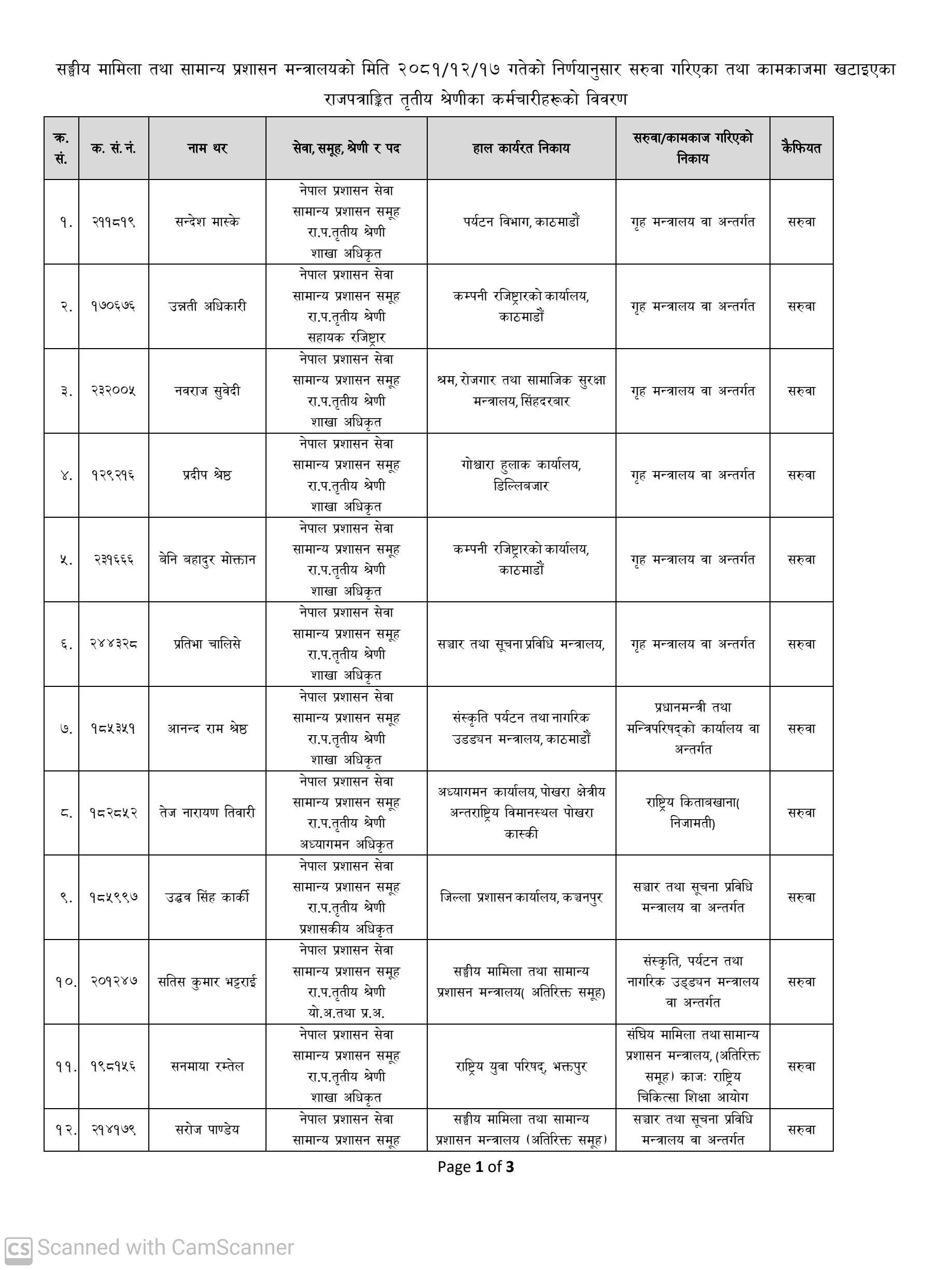 काठमाडौँ । २५ जना शाखा अधिकृतको सरुवा गरिएको छ । संघीय मामिला तथा सामान्य प्रशासन मन्त्रालयले विभिन्न निकायमा कार्यरत अधिकृतहरूको सरुवा गरेको हो ।