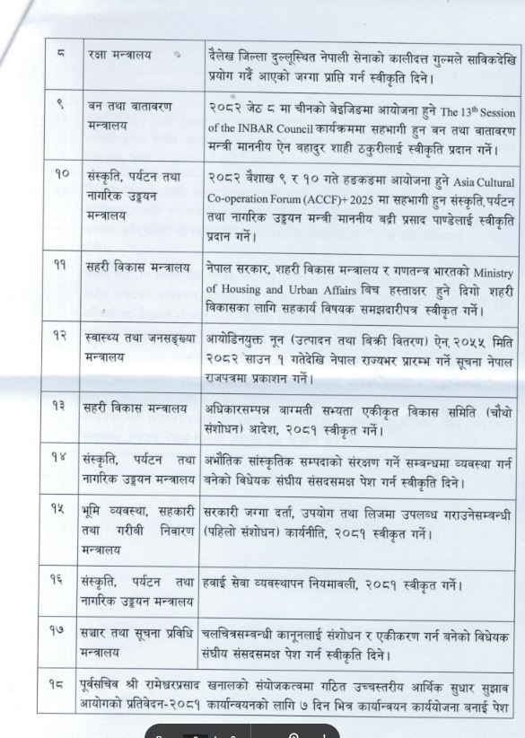 यस्ता छन् मन्त्रिपरिषद् बैठकका २० निर्णय