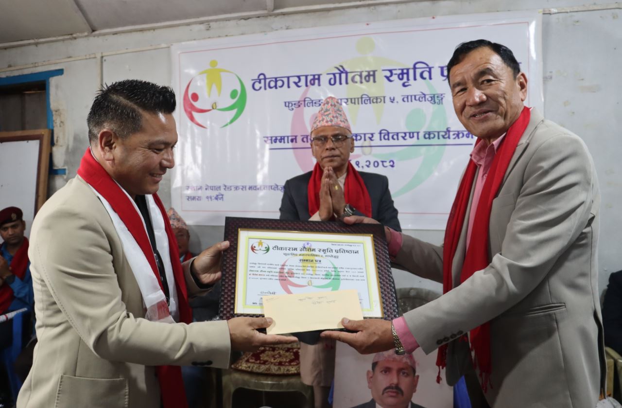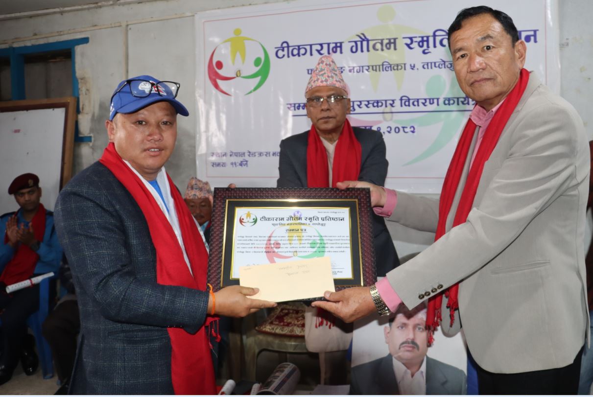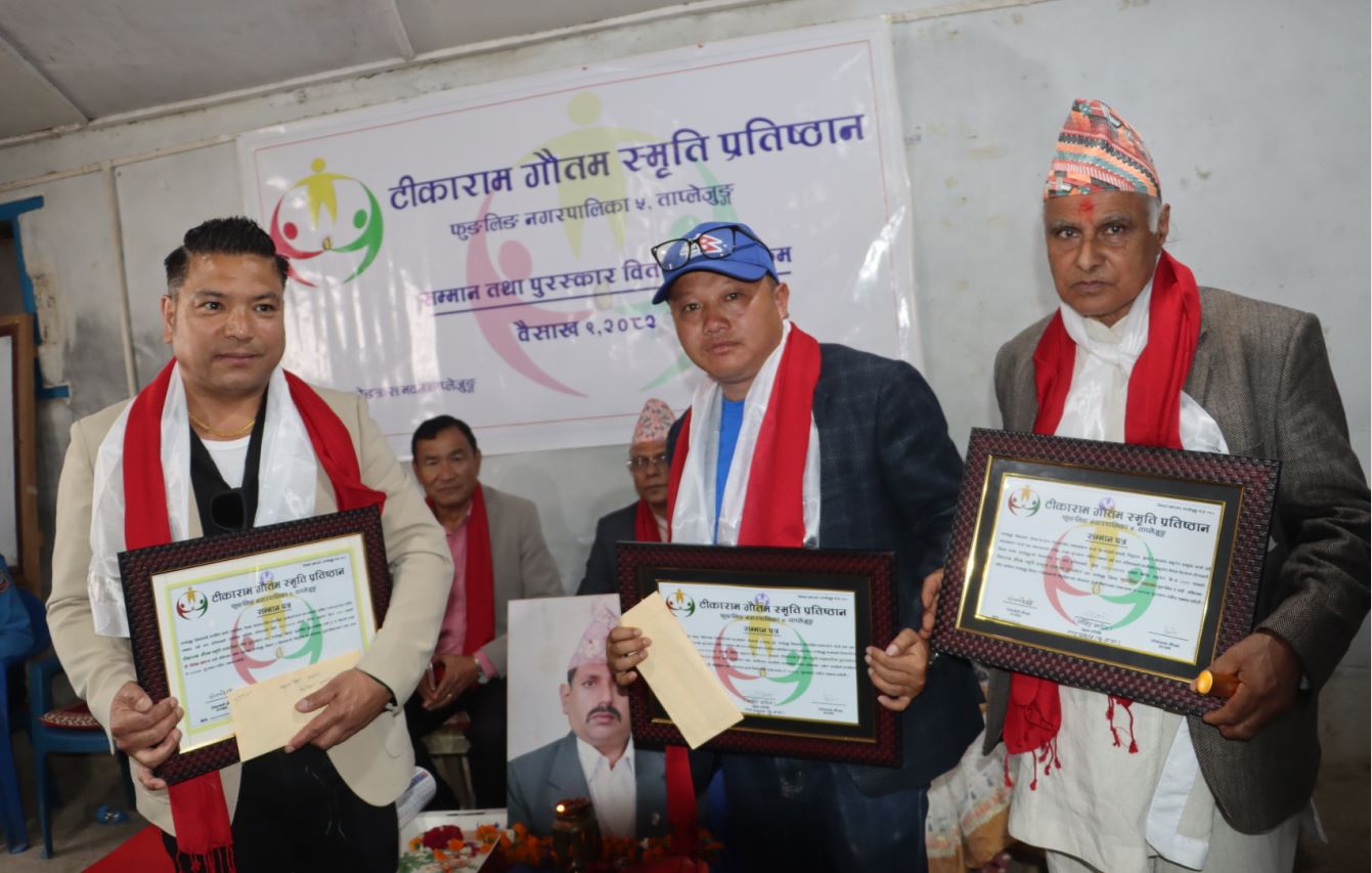 ताप्लेजुङ । यस वर्ष टीकाराम गौतम स्मृति प्रतिष्ठानले तीन जनालाई सम्मान तथा पुरस्कार वितरण गरेको छ । आज टीकाराम गौतम स्मृति प्रतिष्ठानले एक कार्यक्रम गरी एक पत्रकार सहित तीनजनालाई सम्मान गरेको हो ।