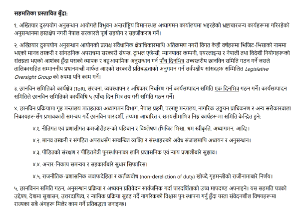 काठमाडौँ ।काठमाडौं। भिजिट भिसा प्रकरणमा राष्ट्रिय स्वतन्त्र पार्टी(रास्वपा)ले सहमतिका लागि छानबिन समिति बनाउन ५ बुँदे प्रस्ताव पठाएको छ ।संसदमा केही दिनदेखि देखिएको गति अवरोध फुकाउन उक्त प्रस्ताव रास्वपाले ५ बुँदे प्रस्ताव पठाएको हो ।