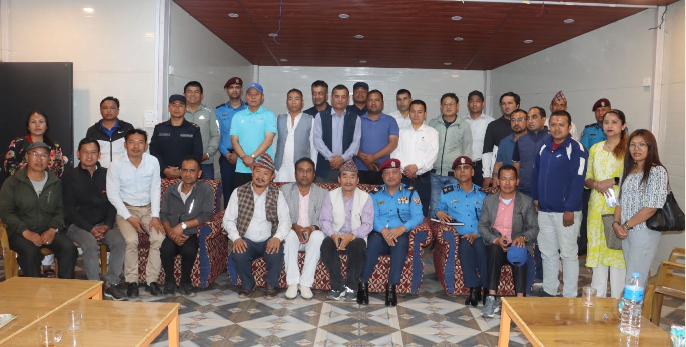 पाथीभरा क्षेत्र विकास समितिको कार्यकारी निर्देशक जिल्लाको शान्ति सुरक्षा अमनचयन कायम गर्न प्रहरी उल्लेख्य भूमिका खेल्नु पर्ने धारणा व्यक्त गर्नुभयो । नेपाल रेडक्रस सभापति ईन्द्र गुरुङले वर्षात शुरु भएकोले सबै विपद व्यवस्थापनमा सवै सचेत हुनपर्ने धारणा व्यक्त गर्नुभयो ।
