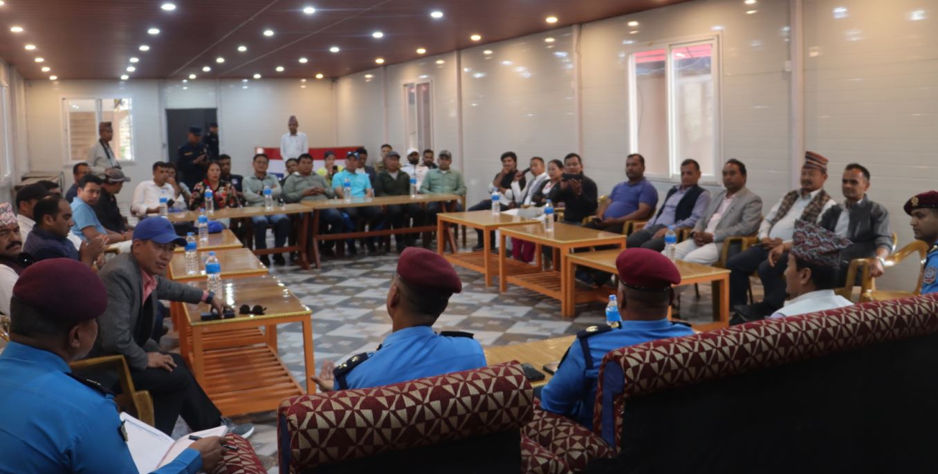 जिल्ला प्रहरी कार्यालय ताप्लेजुङको निरीक्षणमा आउनु भएको डीआईजी कार्कीले आज जिल्लाका स्थानीयबासीले, नागरिक समाजका व्यक्तित्वसँग परिचयात्मक तथा अन्तरक्रिया कार्यक्रमका ताप्लेजुङको जनताको सुरक्षामा कुनै कमी नहुने उल्लेख गदै ढुक्क हुन आग्रह गर्नुभयो ।