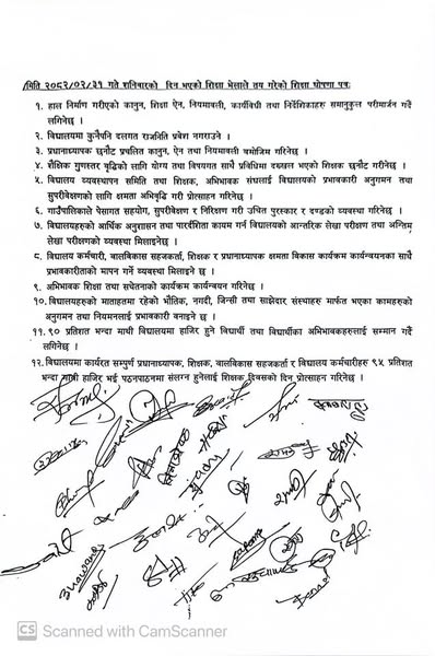 पालिकाले निर्माण गरेका कानून शिक्षा ऐन नियमावली, कार्यविधि र निर्देशिकाहरुलाई समायानुकुल परिमार्जन गर्ने, प्रचलित कानून, ऐन र नियमावली बमोजिम बिद्यालयका प्रधान्यापकहरुको छनौट गरिने शैक्षिक गुणस्तर बृद्धिका लागि योग्य र विषयगत साथै प्रविधिमा दख्खल राख्ने शिक्षक छनौट गर्ने समेत घोषणा भएको पालिका अध्यक्ष दिपेन पोमुले जानकारी दिनुभयो ।